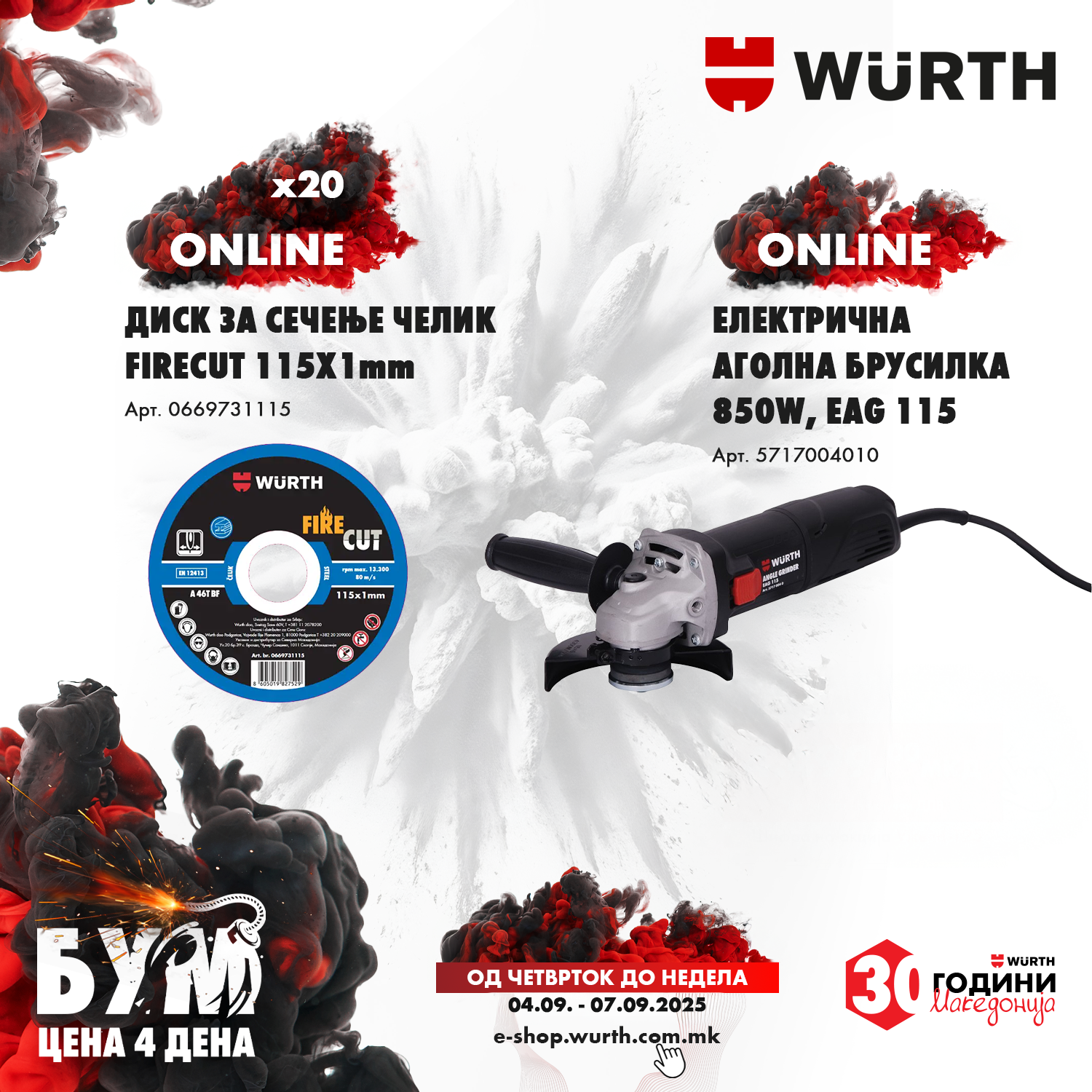 Електрична аголна брусилка, 850W, EAG 115+диск за сечење челик Firecut 115x1мм - 20 пар.