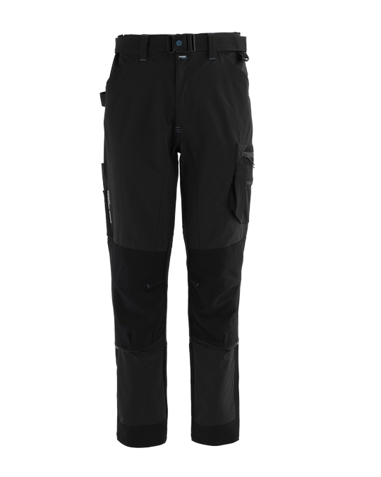 RAINOLD ПОВЕЌЕСЕЗОНСКИ ПАНТАЛОНИ ЦРНИ од четиринасочна растеглива ткаенина, лесни и дишечки, странични ластици на половината и јамки на ременот, мрежести влошки во контрастна боја во пределот на бубрезите. Затворање со капа со патент и метално копче со финиш. Практичен отстранлив полиестерски појас, прилагодлив со самозатворачка тока. Полиестерска влошка на десната страна и пластичен прстен вметнат на левата страна корисни за закачување додатоци и алати.