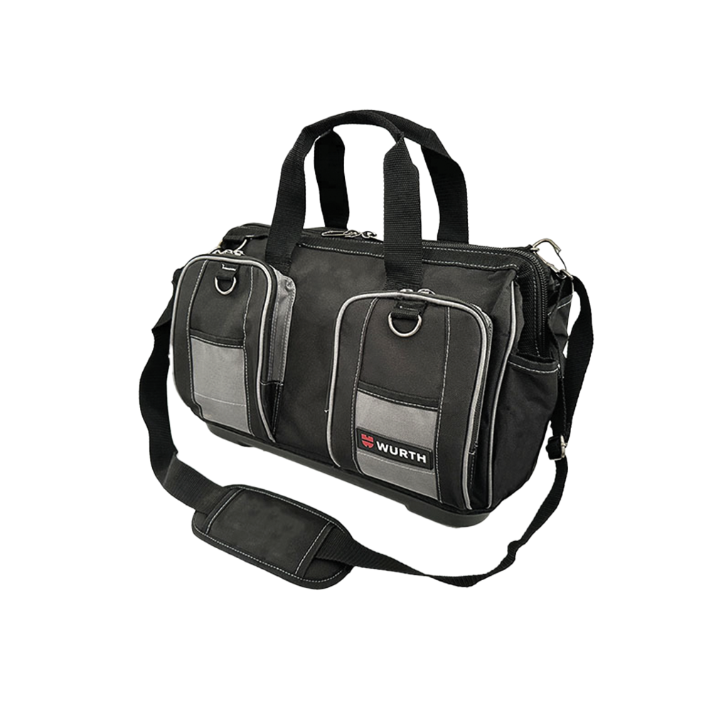 Торба за алат е изработена од водоотпорен 600D полиester, со тврдо дно за стабилност и издржливост. Со димензии од 43x38x30 cm и капацитет од 20 kg, оваа торба има 33 џебови (20 внатрешни и 13 надворешни) за практично организирање и лесен пристап до алатите.