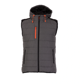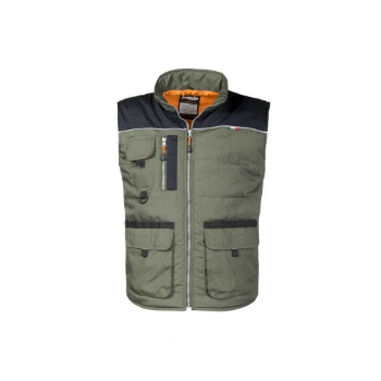 Morgan работен елек, со сива боја, изработен од мешавина на полиестер и памук, со голем број на џебови. Може да се користи во градежната индустрија, во работилници, во производство, при транспорт, при извршување магацински работи.