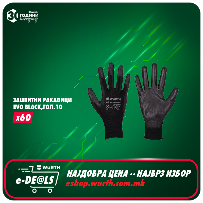 Заштитни ракавици, EVO BLACK,гол.10