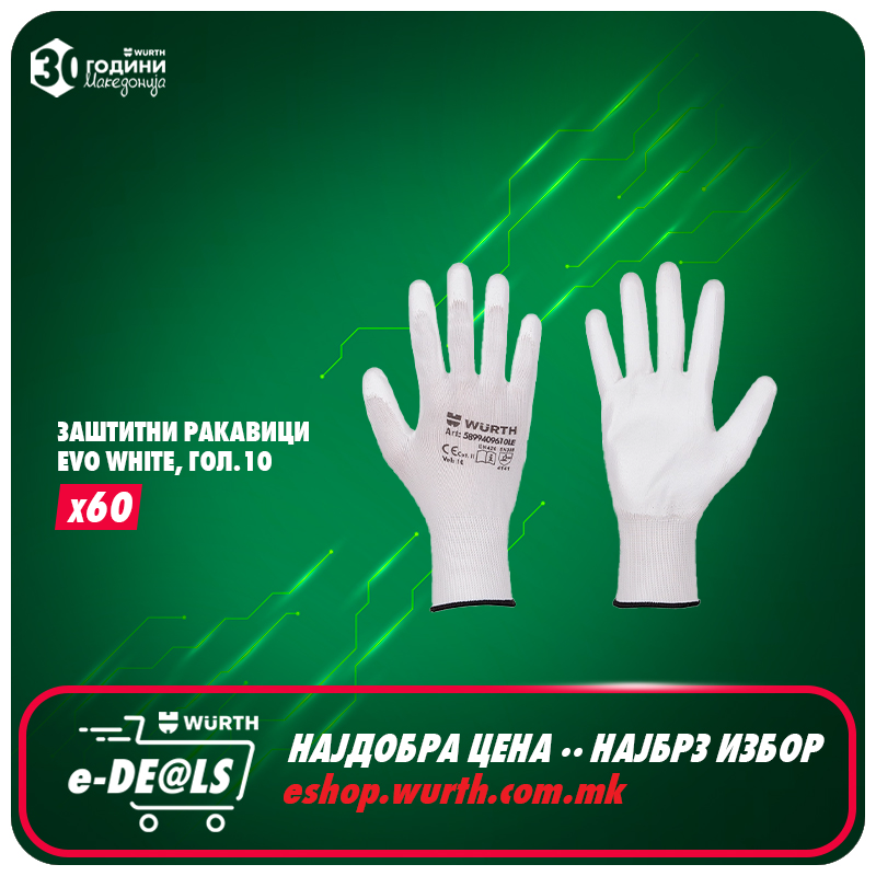 Заштитни ракавици,EVO WHITE, гол.10