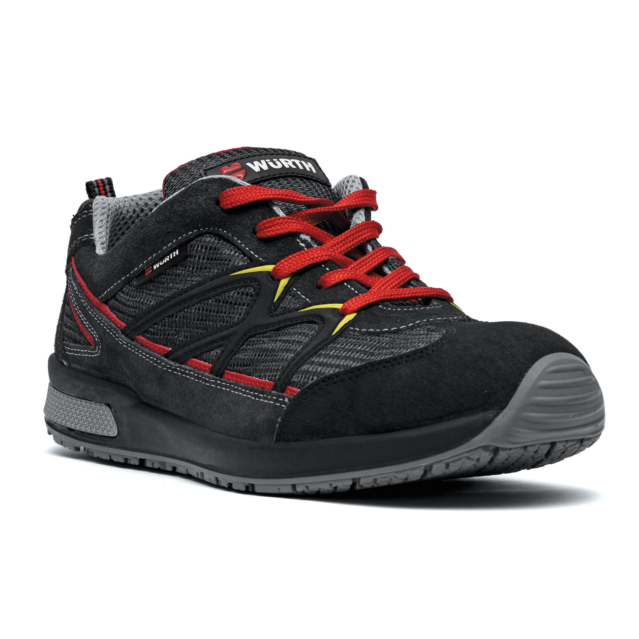 Këpucët e punës Jogger Black me shkallë mbrojtjeje O1 janë bërë nga një kombinim i lëkurës së përmbysur dhe tekstilit. Veshja e brendshme është prej tekstili të rehatshëm dhe të butë. Mbushja antistatike e zëvendësueshme është e dizajnuar në mënyrë anatom