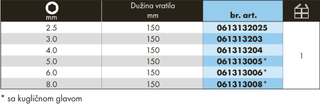Zebra komplet kaçavidash Allen me dorezë T dhe kokë top. Gama e pranimit 2,5-8 mm.
